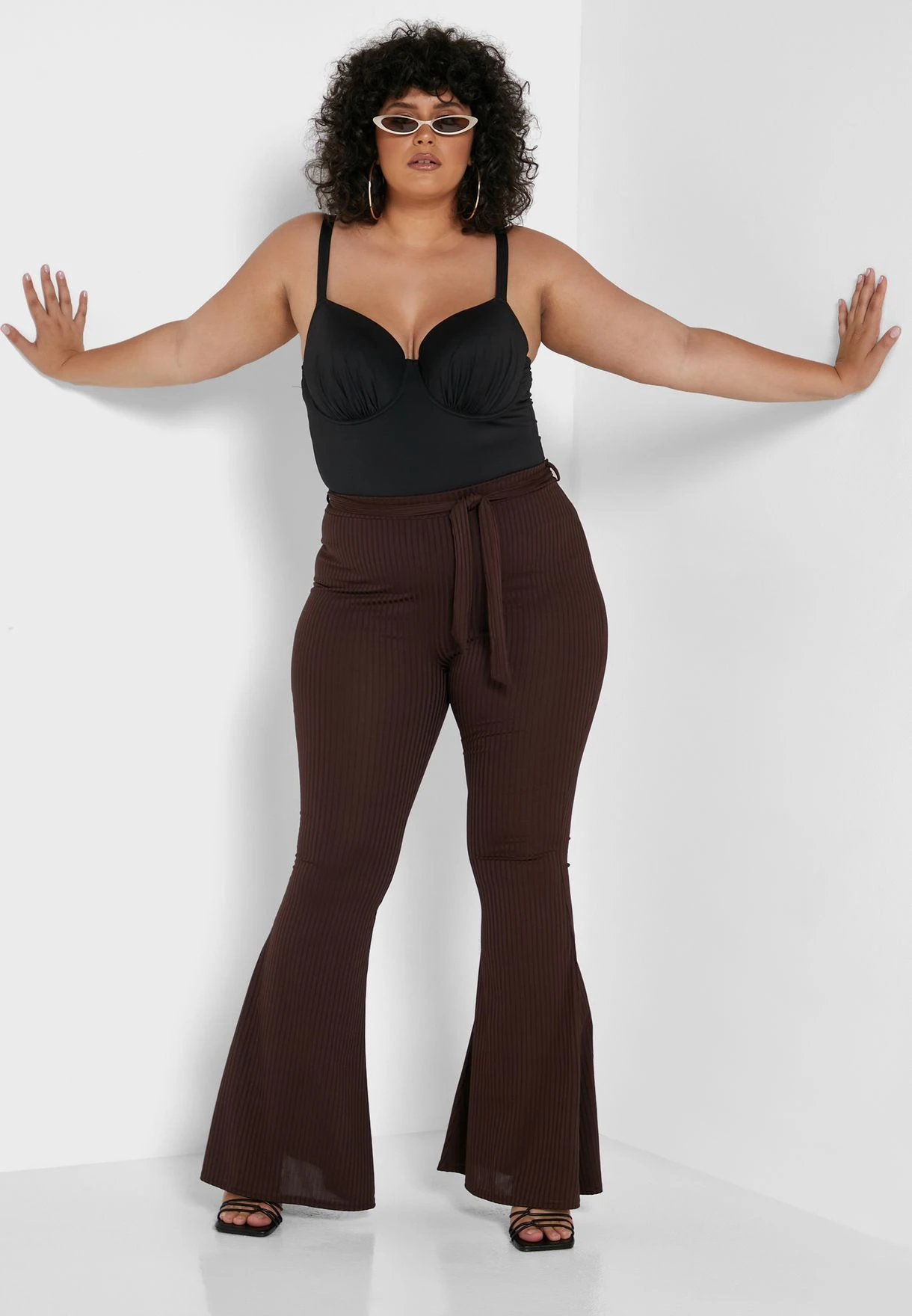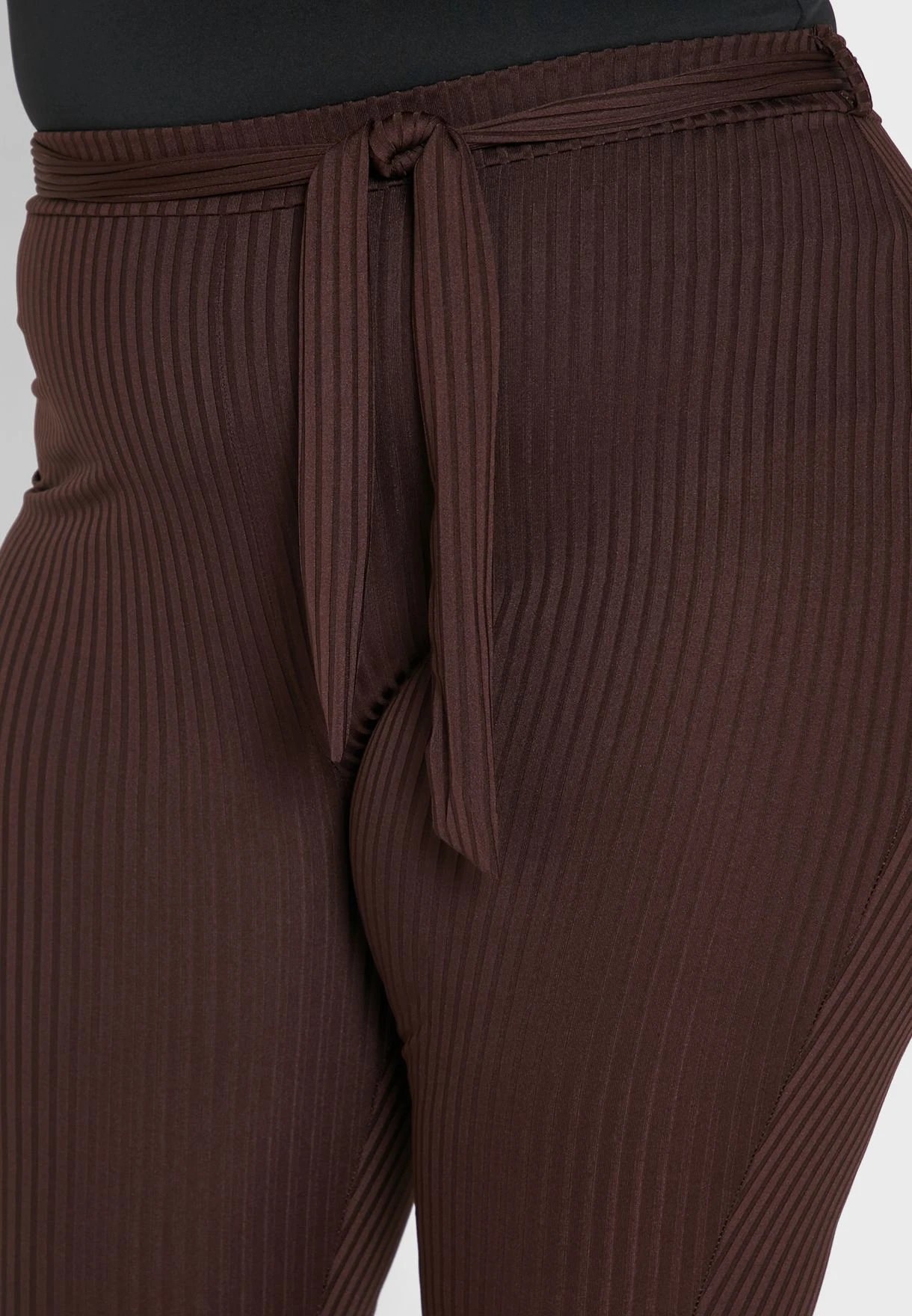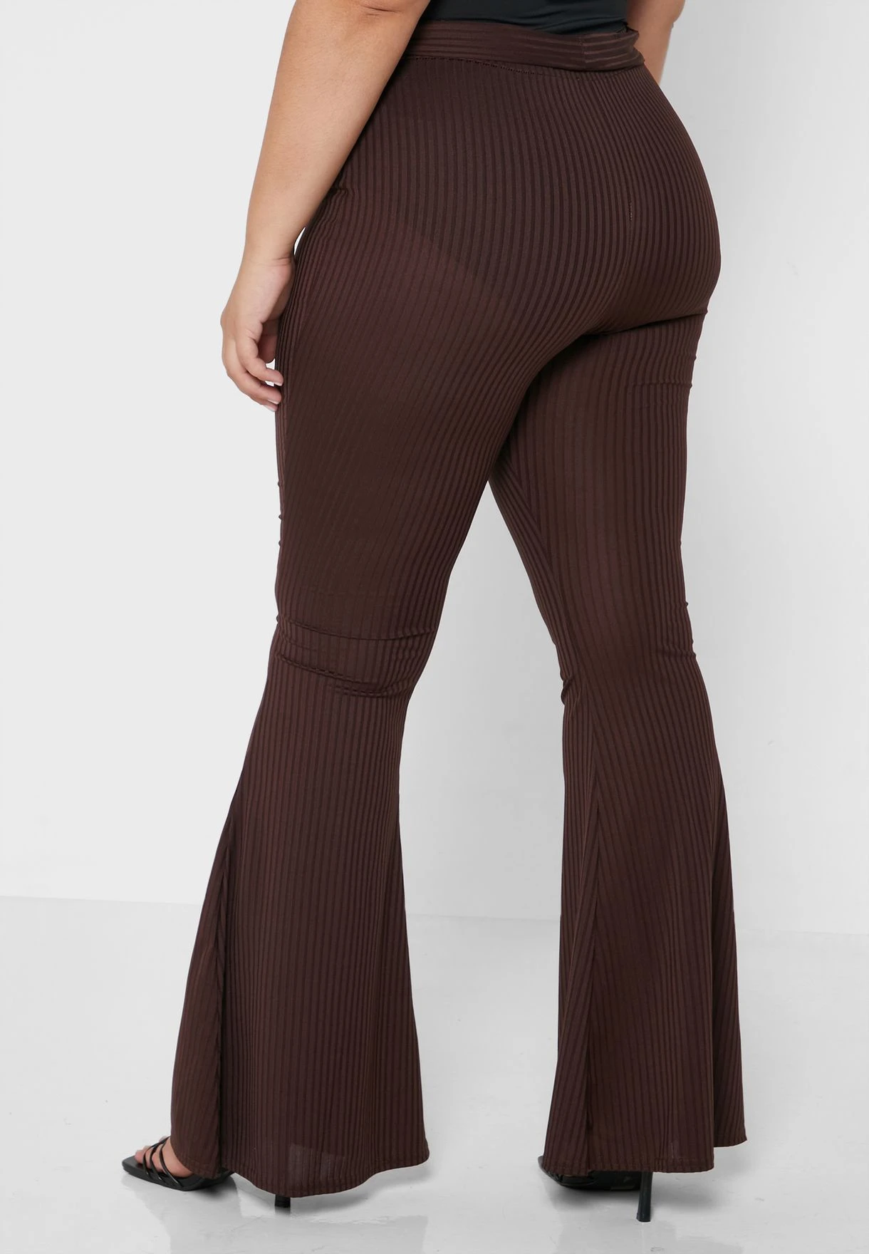 Chocolate Plus Rib Tie Waist Flare Trouser