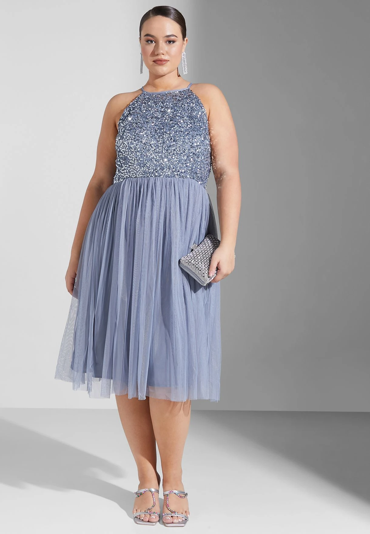 Halter Neck Tulle Sequin Detail Dress